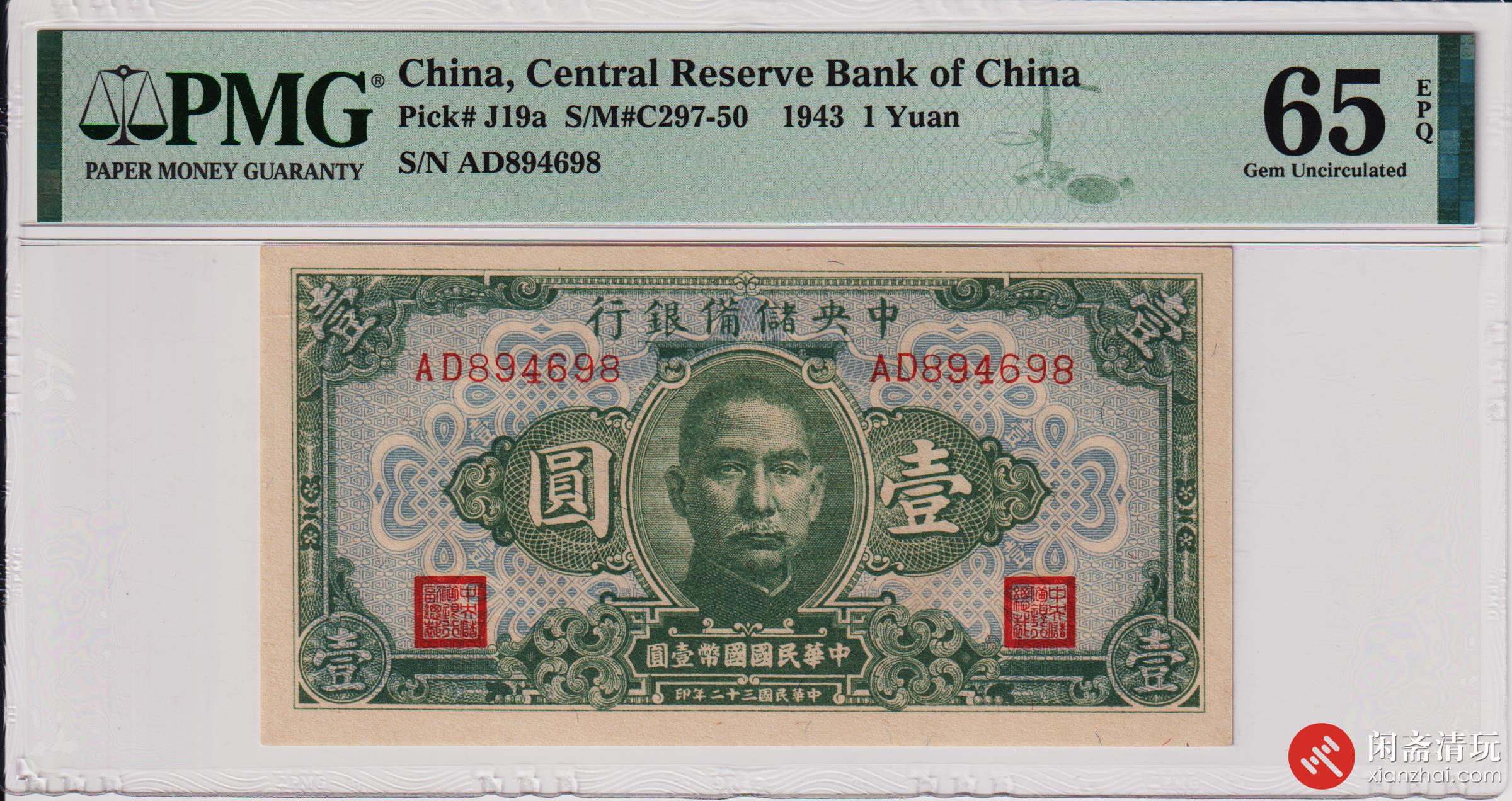 民国三十二年(1943)中央储備银行壹圆
