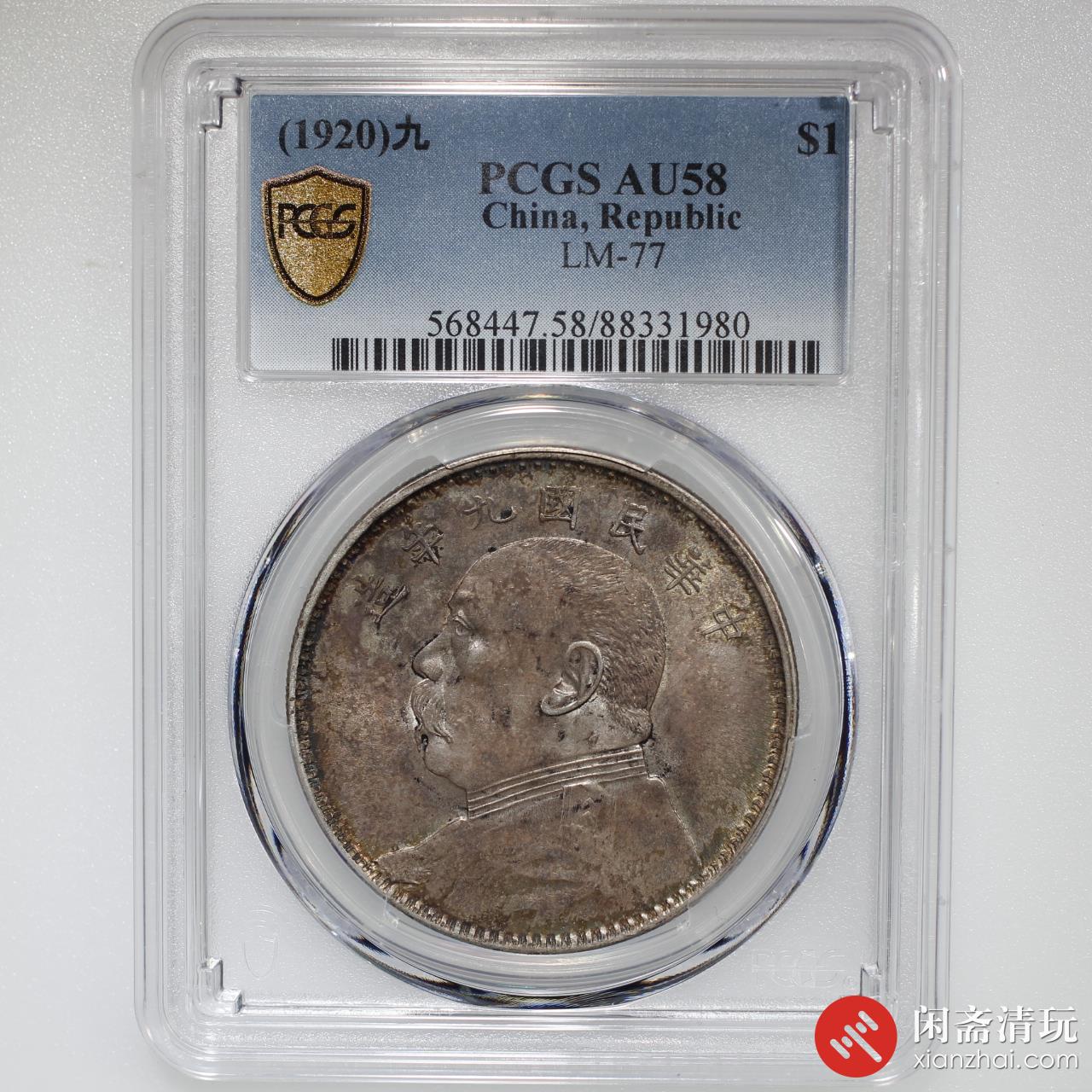 国别:中国,时期:中华民国,年号/年份:民国九年(1920),造币厂:中央铸币,面额:壹圆,材质:银,质量:普制
