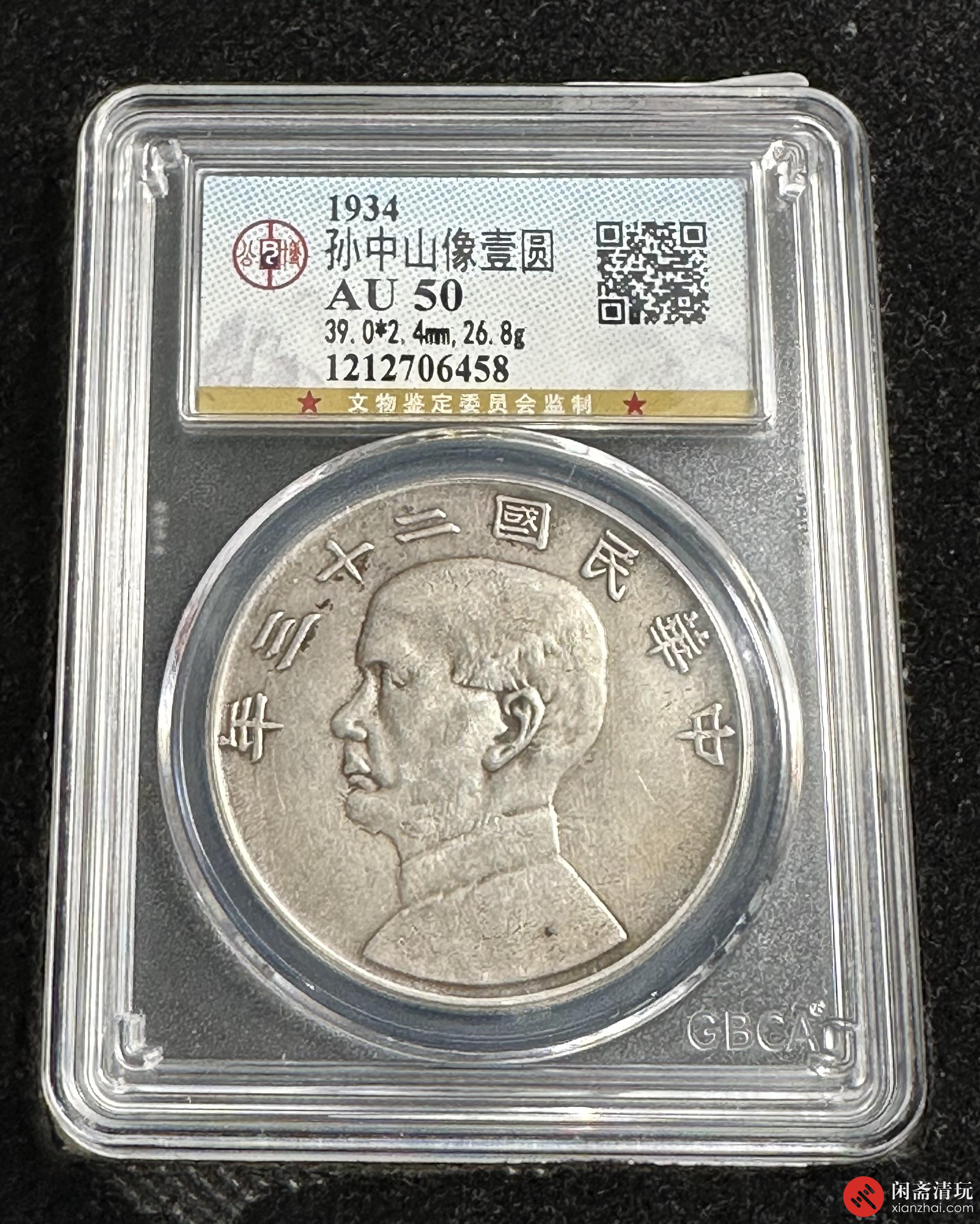 国别:中国,时期:中华民国,年号/年份:民国二十三年(1934),造币厂:中央铸币,面额:壹圆,材质:银,质量:普制